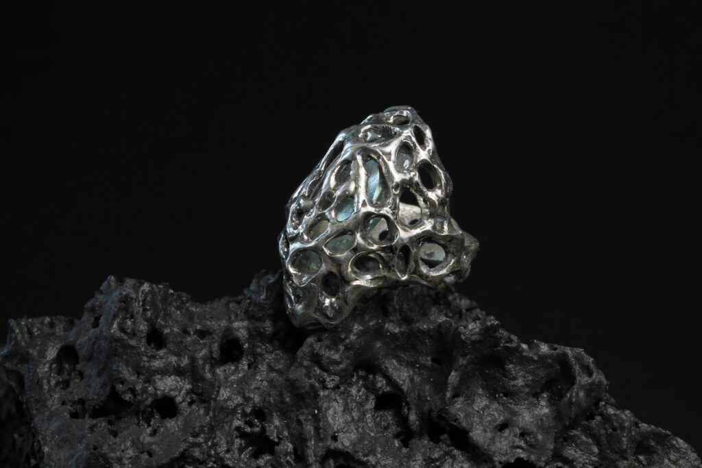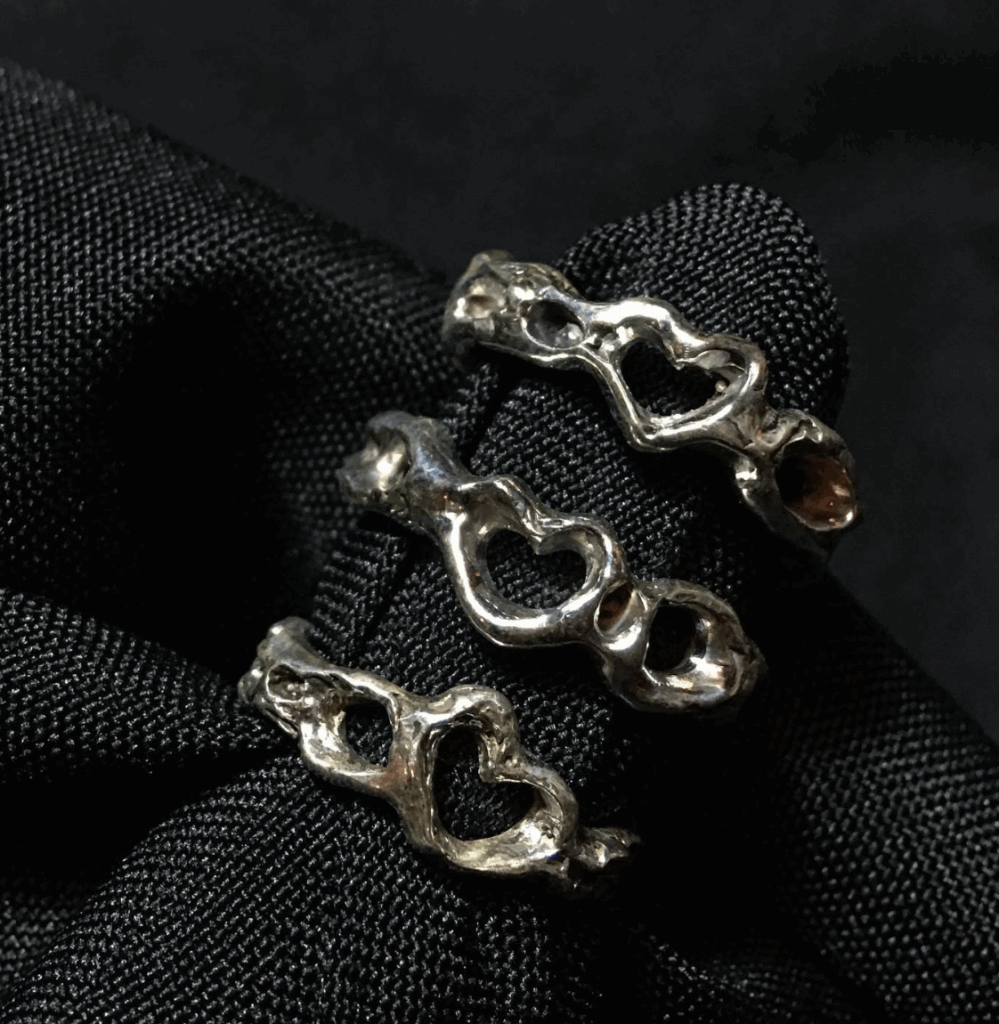 Pour les bijoux , le processus créatif est aussi organique que l’apparence de chaque produit fini. En effet, l’utilisation de la technique à la cire perdue permet une infinité de mouvement et de designs. En utilisant des matériaux recyclés, chaque bijou est méticuleusement fait main.