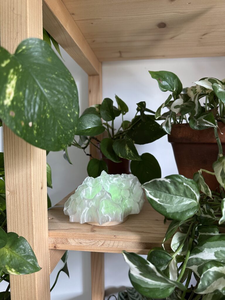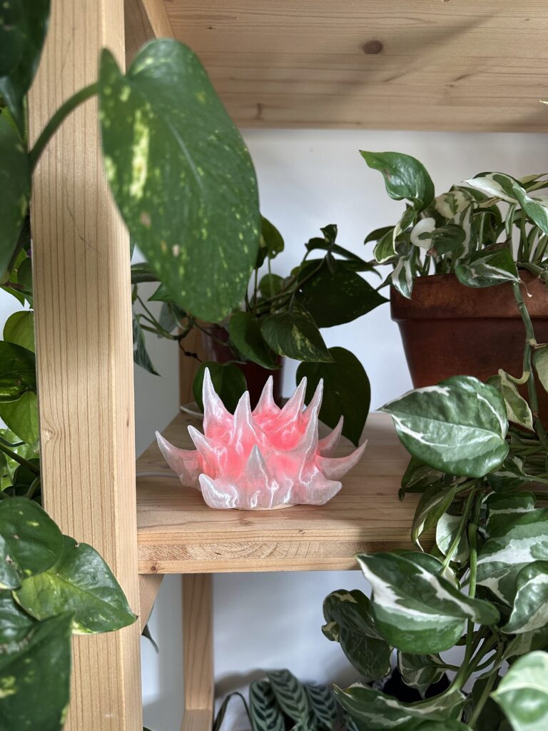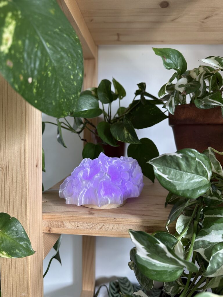 Pour les lampes , le processus de création des lampes allie technologie et artisanat. Imprimées en 3D puis travaillées à la main, elles incarnent la rencontre entre matière et lumière. Chaque pièce est unique, reflet d’un équilibre vivant entre nature, machine et imagination.