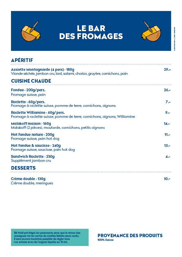 Le Bar des Fromages vous attend pendant toute la durée du marché de Noël pour de succulentes dégustations de Fondues, Raclettes, Hot fondues, Malakoff et bien d’autres délices.