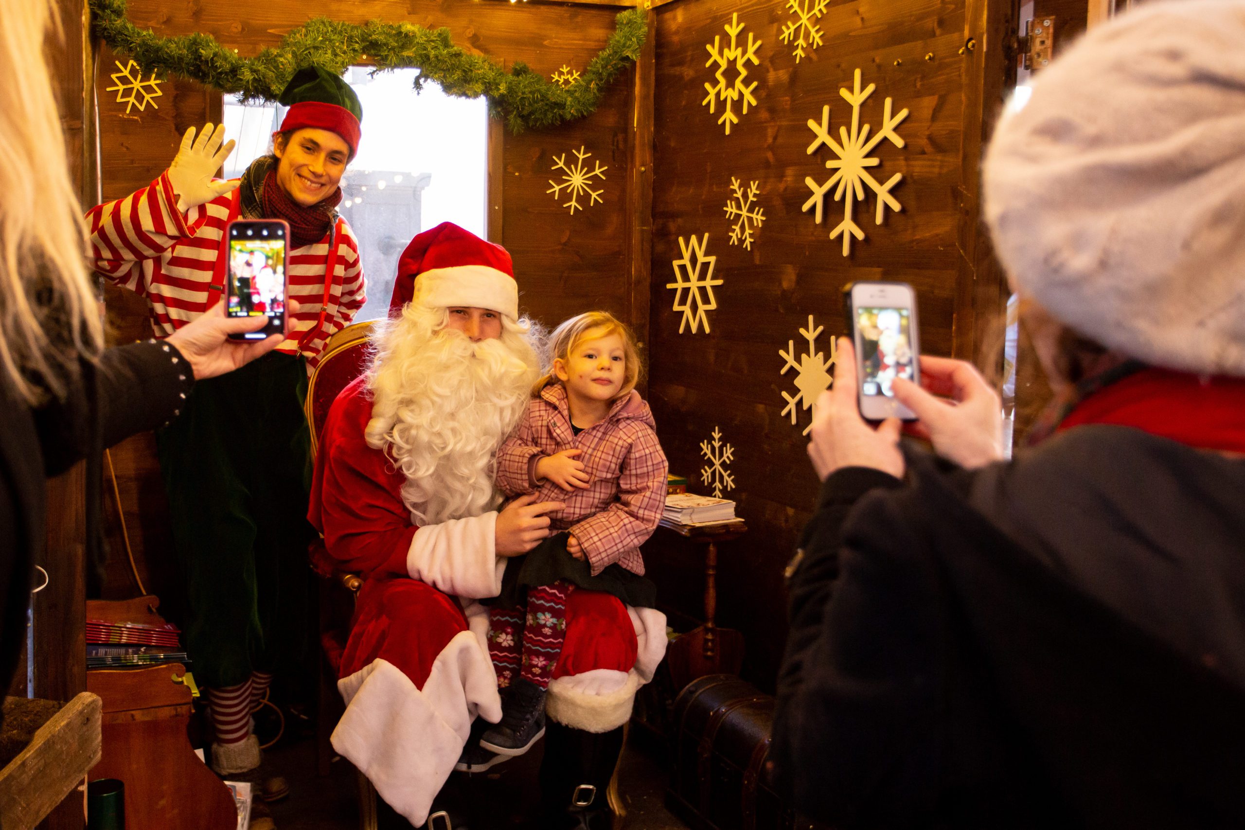 Le Père Noël écoute les souhaits des bambins et se fait volontiers tirer le portrait.