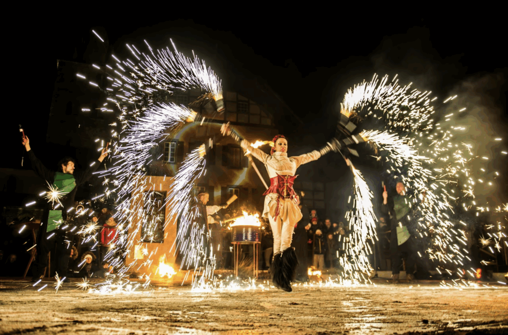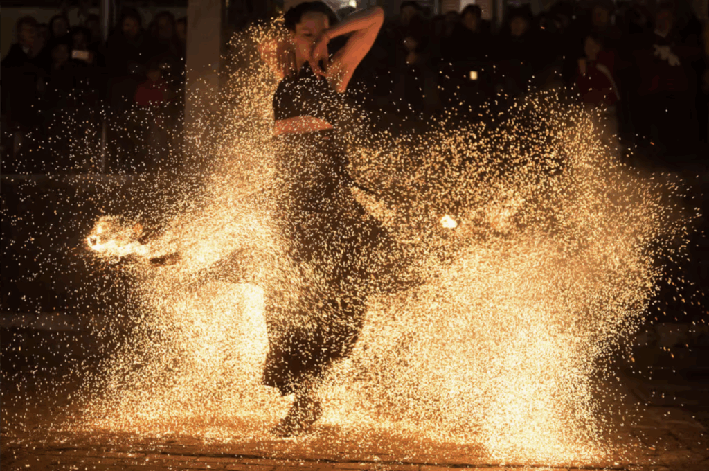 Plongez dans un univers envoûtant où la danse rencontre le feu, où chaque geste dessine des éclats de lumière dans l’obscurité. Entre puissance et délicatesse, ce spectacle transporte le spectateur dans une expérience hypnotique, où la chaleur des flammes se mêle à l’énergie des artistes.
